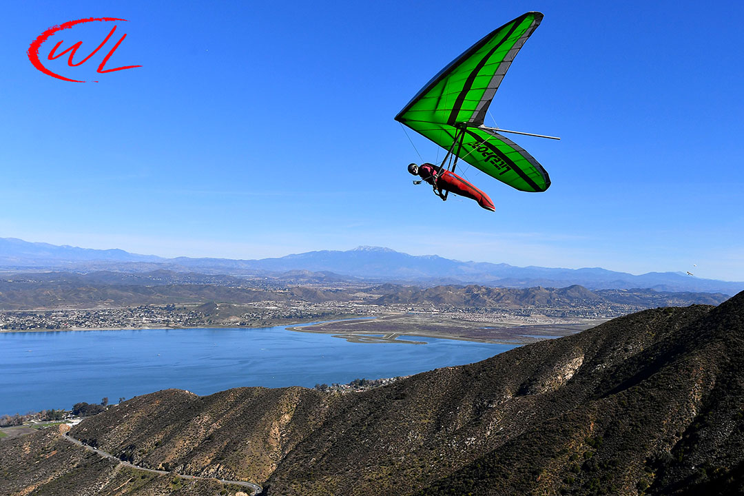 Hang gliders get a breath taking view as they soar over Lake Elsinore. Awesome photos by