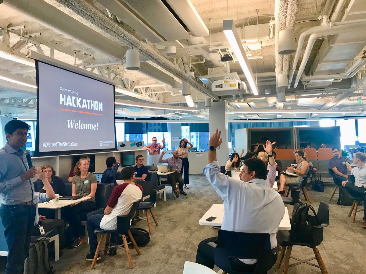 For the next three days, Foundation Medicine teams are coming together for a #hackathon in our Seaport location. They’ll work together to #disruptthestatusquo and come up with innovative solutions to help us continue transforming #cancer care. #FMIimpactpic.twitter.com/OS1eofI5l0