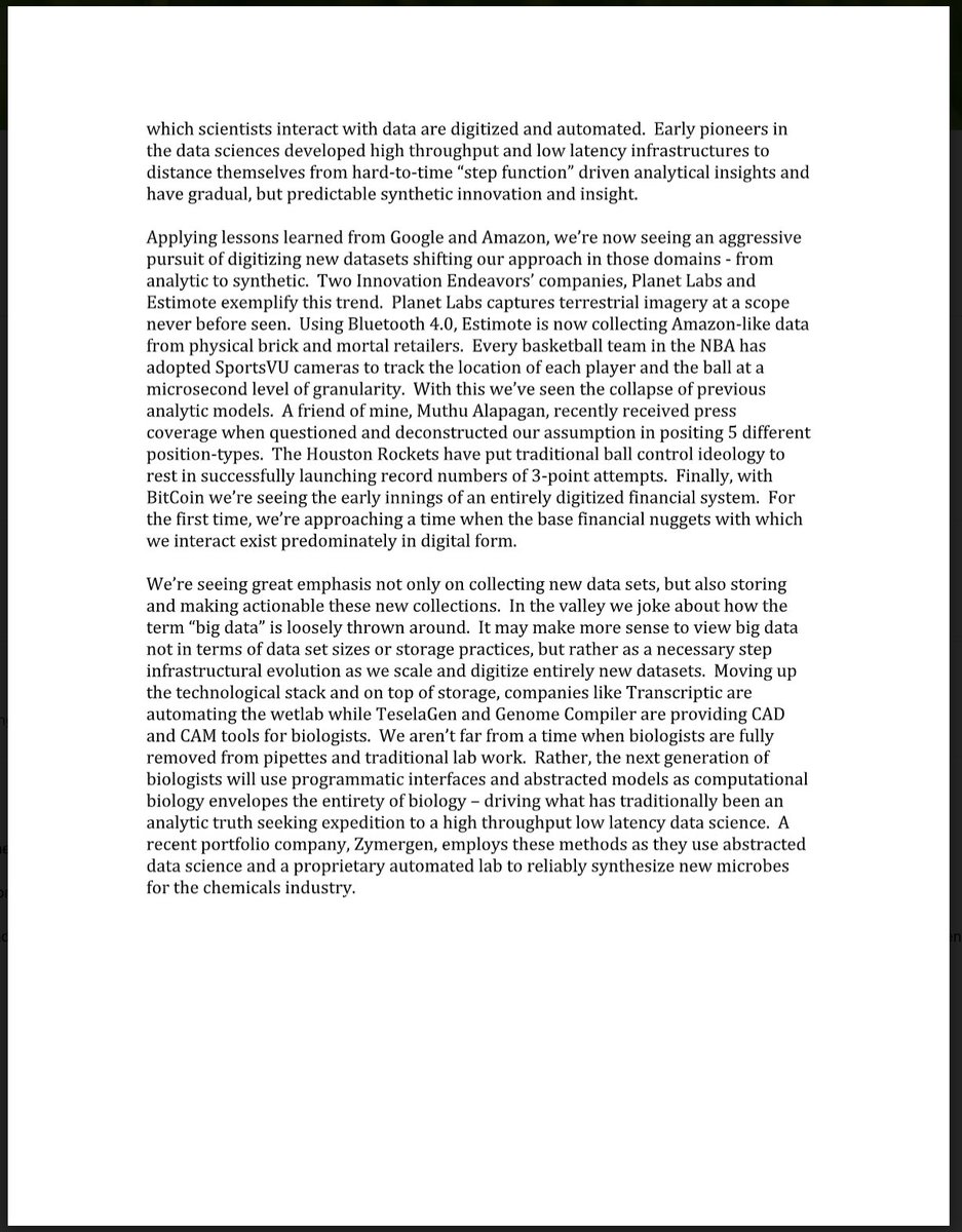 A draft of an essay I wrote in 2013. No mention of "AI", "machine learning", or "deep learning" -- but the essential kernels of what would become many of my investment theses for the next 7 years. The core: "analytic" towards "synthetic" truths is still under-appreciated today.pic.twitter.com/mTqql72PGB