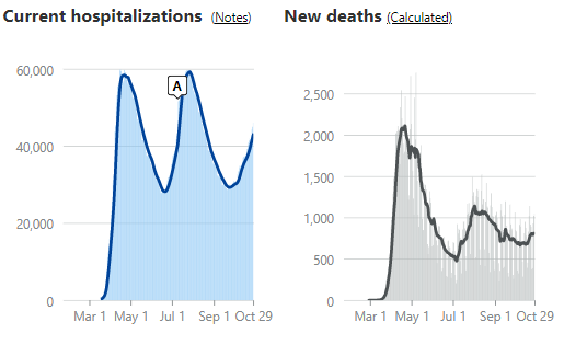 Cases started going up in early September, deaths have remained flat... are we allowed to take this as a win? Sept 7: 25k cases Yesterday: 90k (!) Thank you to the front line workers, who are doing a great job treating folks also, testing way up since the summer plateau!pic.twitter.com/PtPP89bps9