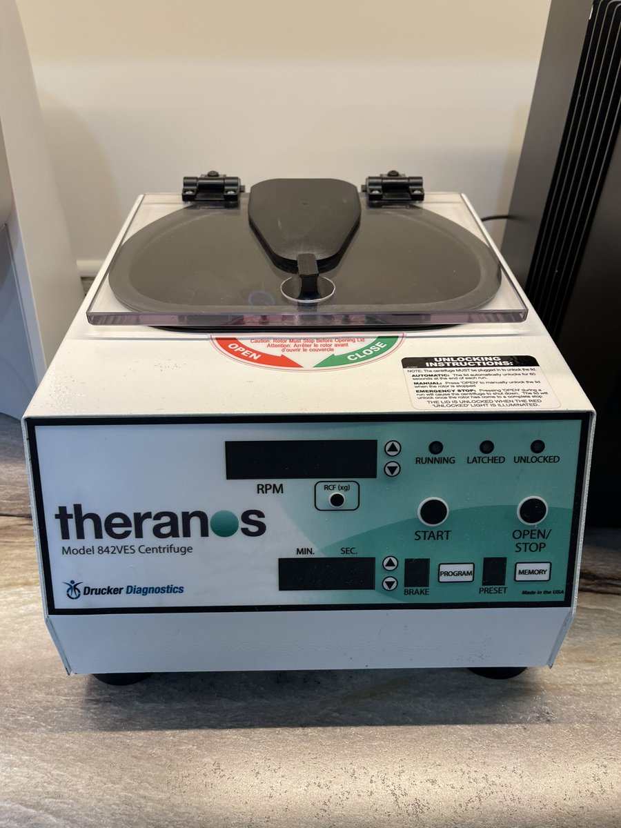 Looking for a REAL Theranos machine. This one on the left is a real centrifuge with a Theranos logo on it, but I’m interested in the one on the right - the mythical Theranos Edison machine. If anyone has one, or worked on one or even just saw it in action, let me know.pic.twitter.com/iIOW2rBGO7