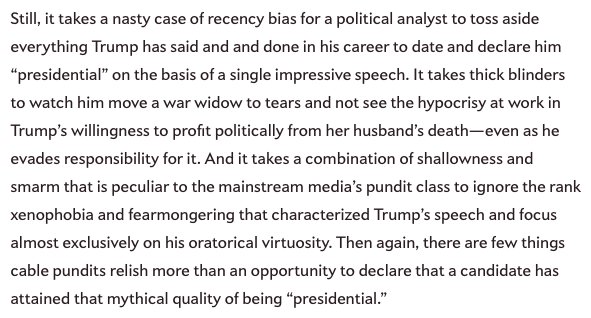 TV news pundits racing to declare Donald Trump "presidential" are everything that's wrong with TV news.http://www.slate.com/blogs/the_slatest/2017/03/01/the_media_are_suddenly_declaring_trump_presidential_that_s_absurd.html …