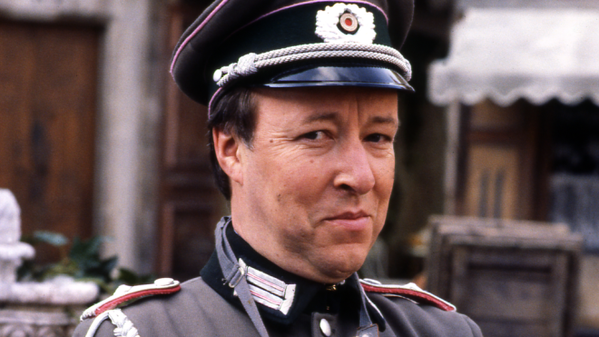 Easy. The one on the left is Lt. Gruber from Allo Allo and the one on the right is Jeffrey Fairbrother from Hi de Hi.