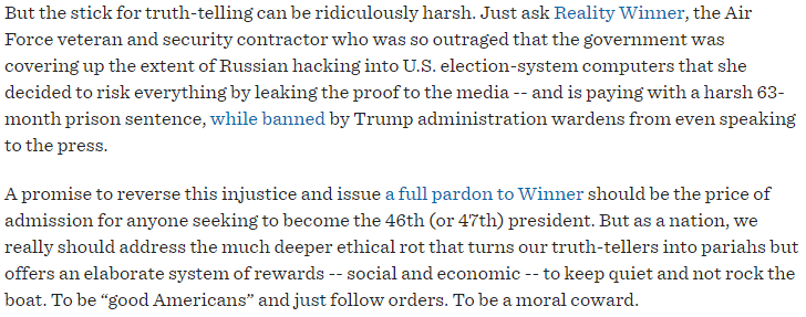 Here's an excerpt about Reality. Please share and urge the Democratic candidates to promise to issue her a full pardon. #FreeRealityWinnerpic.twitter.com/B5DOlthrsi