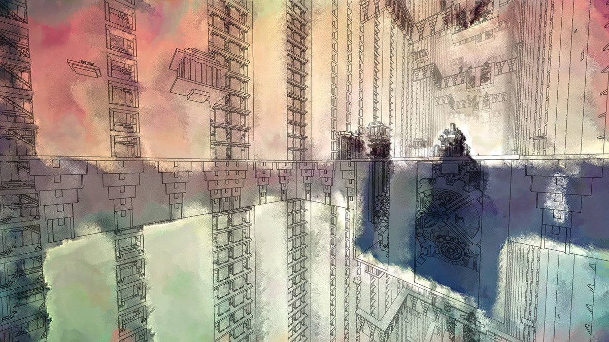 Some images from Manifold Garden's photo mode (currently still a work-in-progress). This is a water color style effect we're working on. It's looking really promising so far!pic.twitter.com/VnxWkzaMnl