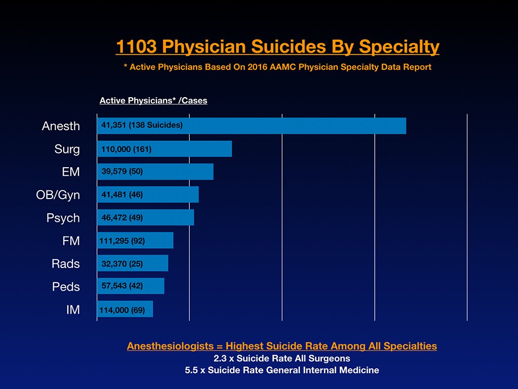 #Anesthesiologists die by#suicide at 2.3 x rate of all surgeons & 5.5 X rate of general internal medicine docs. Latest data here: http://www.idealmedicalcare.org/1103-doctor-suicides-13-reasons-why/ …@SimaPendharkar@drcraigwax@BartAndrews@elizcohencnn@TEDTalks@TEDMED@anesthesianews@Duke_Anesthesia#Meded@danie2lifepic.twitter.com/60G4SW0t0j