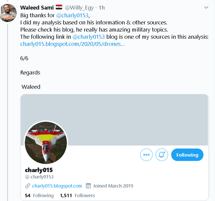 Big thanks for @charly0153, I did my analysis based on his information & other sources. Please check his blog, he really has amazing military topics. The following link in @charly0153 blog is one of my sources in this analysis: https://charly015.blogspot.com/2020/05/drones-male-destruidos-en-libia.html … 6/6 Regards Waleedpic.twitter.com/ya79qtmn6T