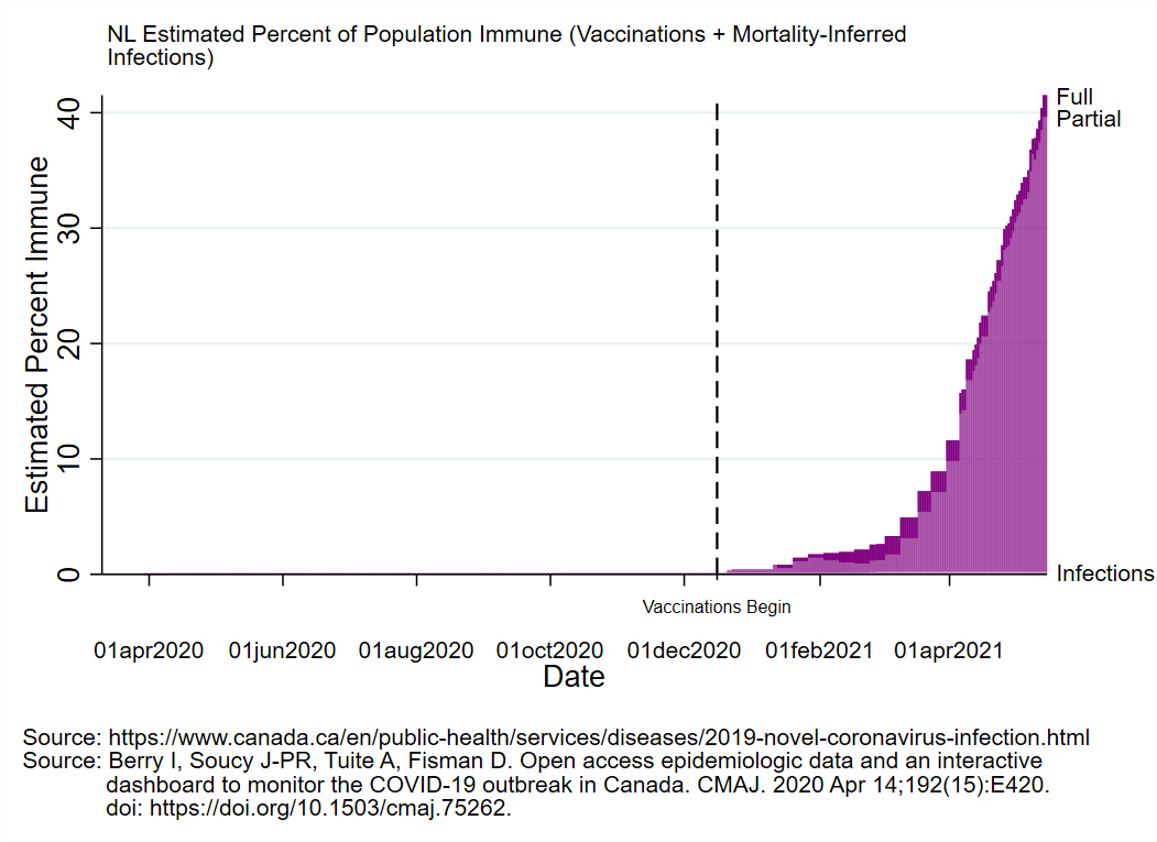 Graph shows actual first dose coverage (blue) compared to a charitable maximum (green) that accounts for previously given 2nd doses and gives a 5-day grace period on deliveries. Provinces are sorted from smallest (good) to largest (bad) gap between actual/potential coverage.pic.twitter.com/DnWWdbM78L