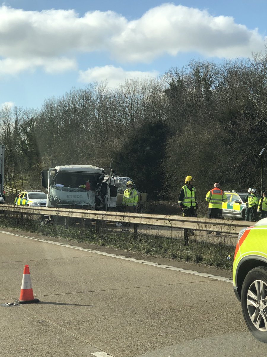 Long delays on the M3 North between J9 Winnall and J8 Popham after an accident involving an ambulance and a lorry. Please avoid the area