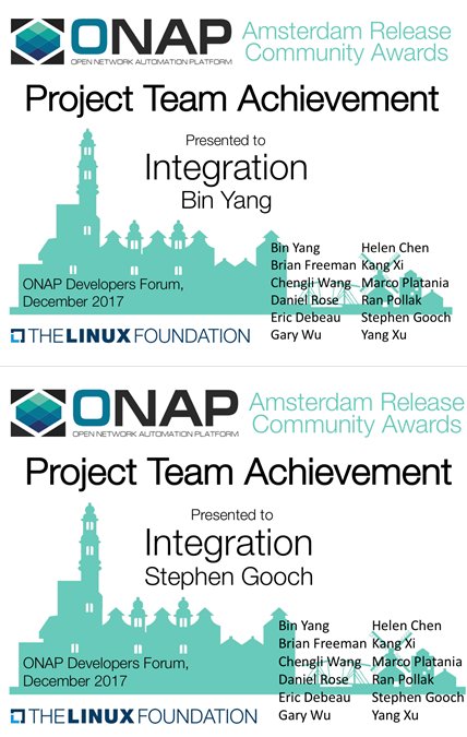 Congratulations to @WindRiver's Bin Yang & Stephen Gooch for winning the #ONAP Community Award for their contribution to the Integration project team for #ONAPAmsterdam (R1) release! @ONAPproject @linuxfoundation #opensourcepic.twitter.com/uW6EDUVv8f