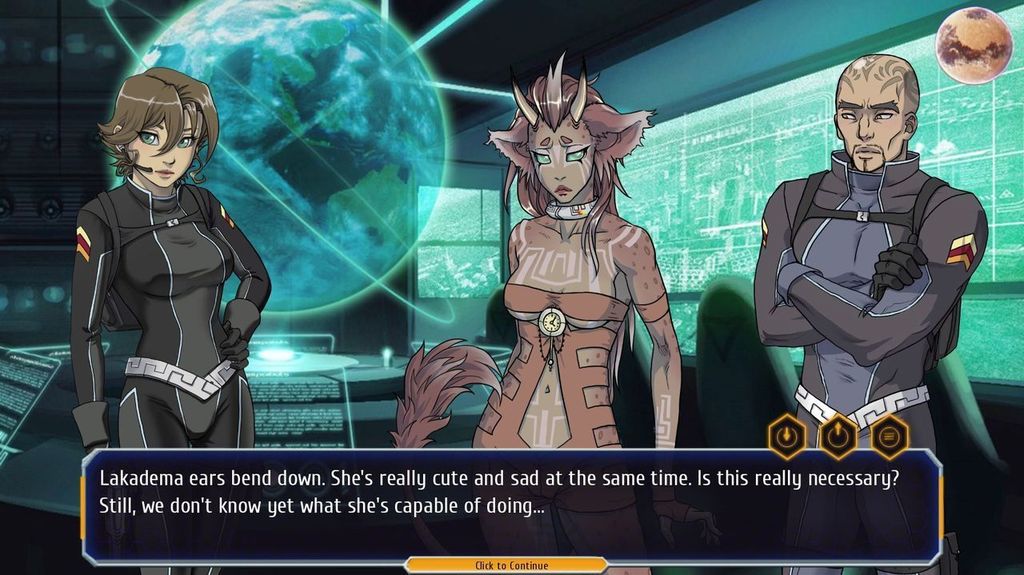 Aww Lakadema cuteness is too much! Jacob just put a psionic inhibitor around her neck and Lisa is unsure about what to do #PlanetStronghold2 #cutepic.twitter.com/4eqAFOHibV