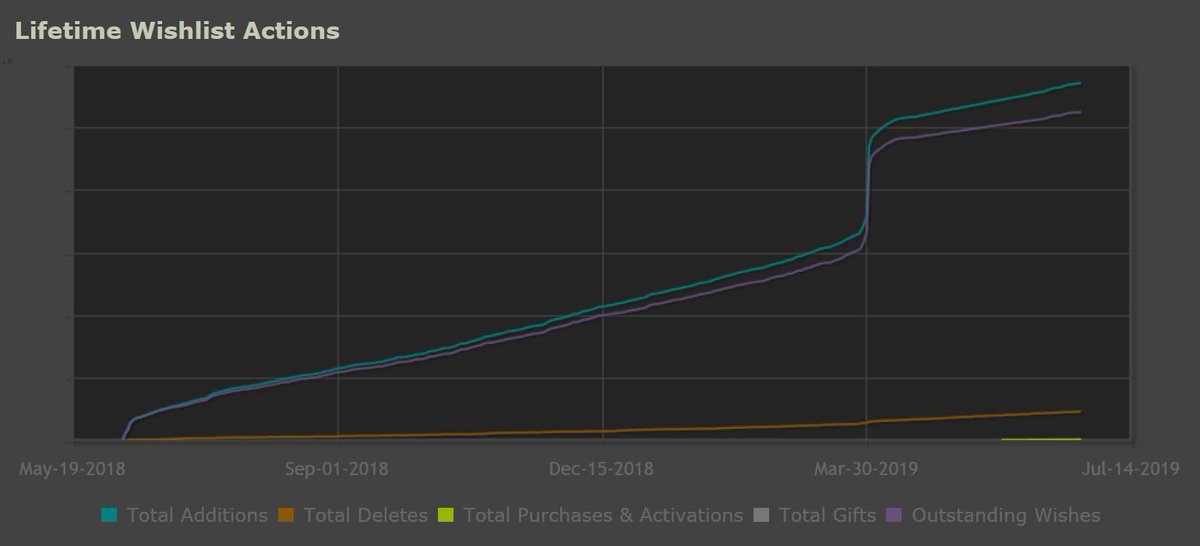 Sigh, marketing indie games is hard work and the payoff is dubious imho. I think we've only got a 20% boost in wishlists through all our efforts. Check out this chart. Explanation in thread!pic.twitter.com/I9stXzn915