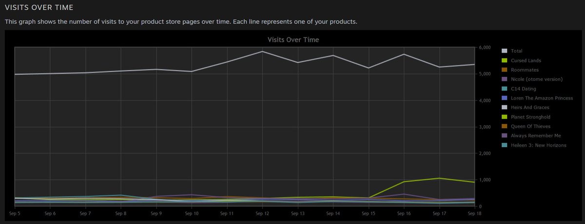 here's some updated stats for all my games. As you can see for me the traffic actually went up after 12th September. Sales were down but that could be due to many random factors. For example this week my latest RPG is on sale so numbers are up againpic.twitter.com/uT1jwIMBq4