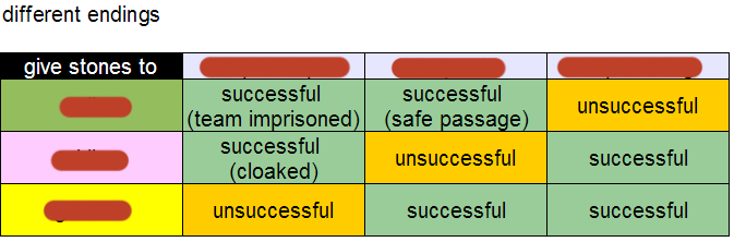 the endings of #PlanetStronghold2 are so complex that I'm making a table with all the possible outcomes/variants. Beside being a small game (tm) it's also a simple game (tm)pic.twitter.com/6W1sLg7DJz