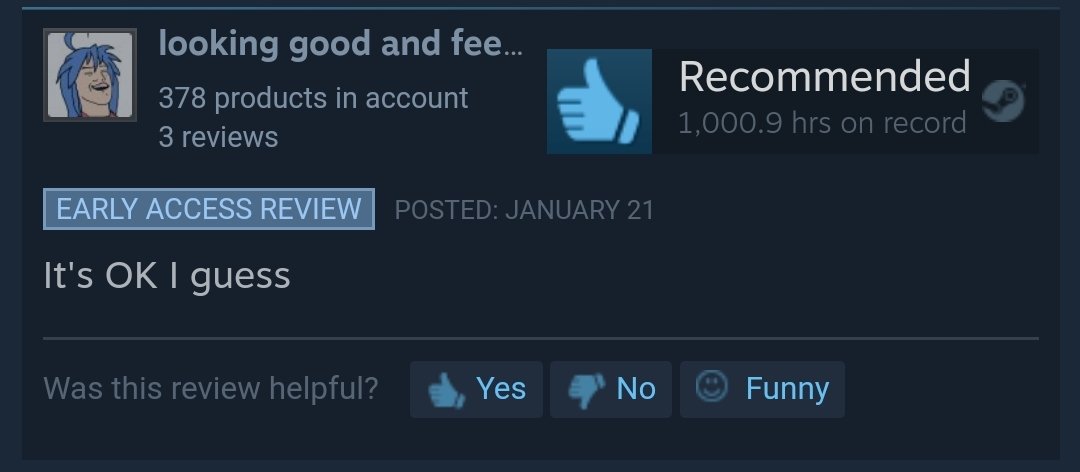 a game needs minimum 1000h of playtime to be "OK", otherwise is only "meh"
