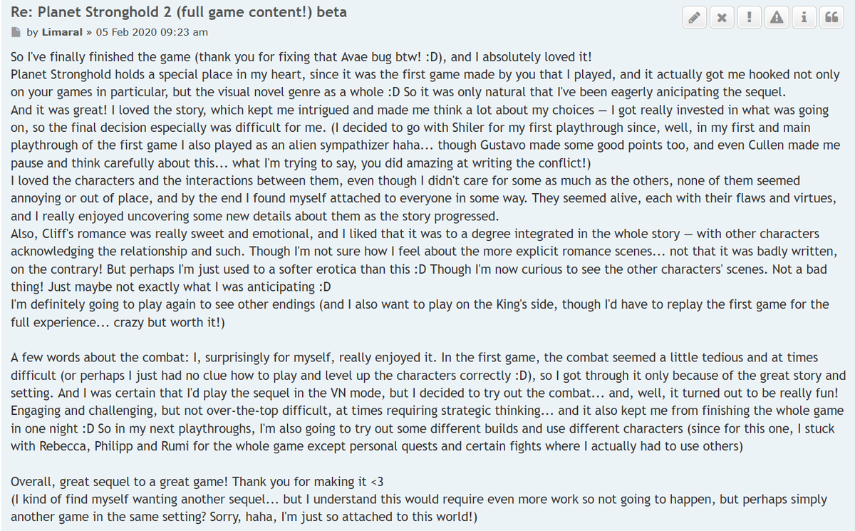 a nice (and long lol) comment in my forums that made me very happy. Might not seem much, but we (all content creators) really appreciate when fans take time to write nice things. If you're a fan of someone, remember to tell them when they do something you like! They will be happypic.twitter.com/U7RU0kyK4l