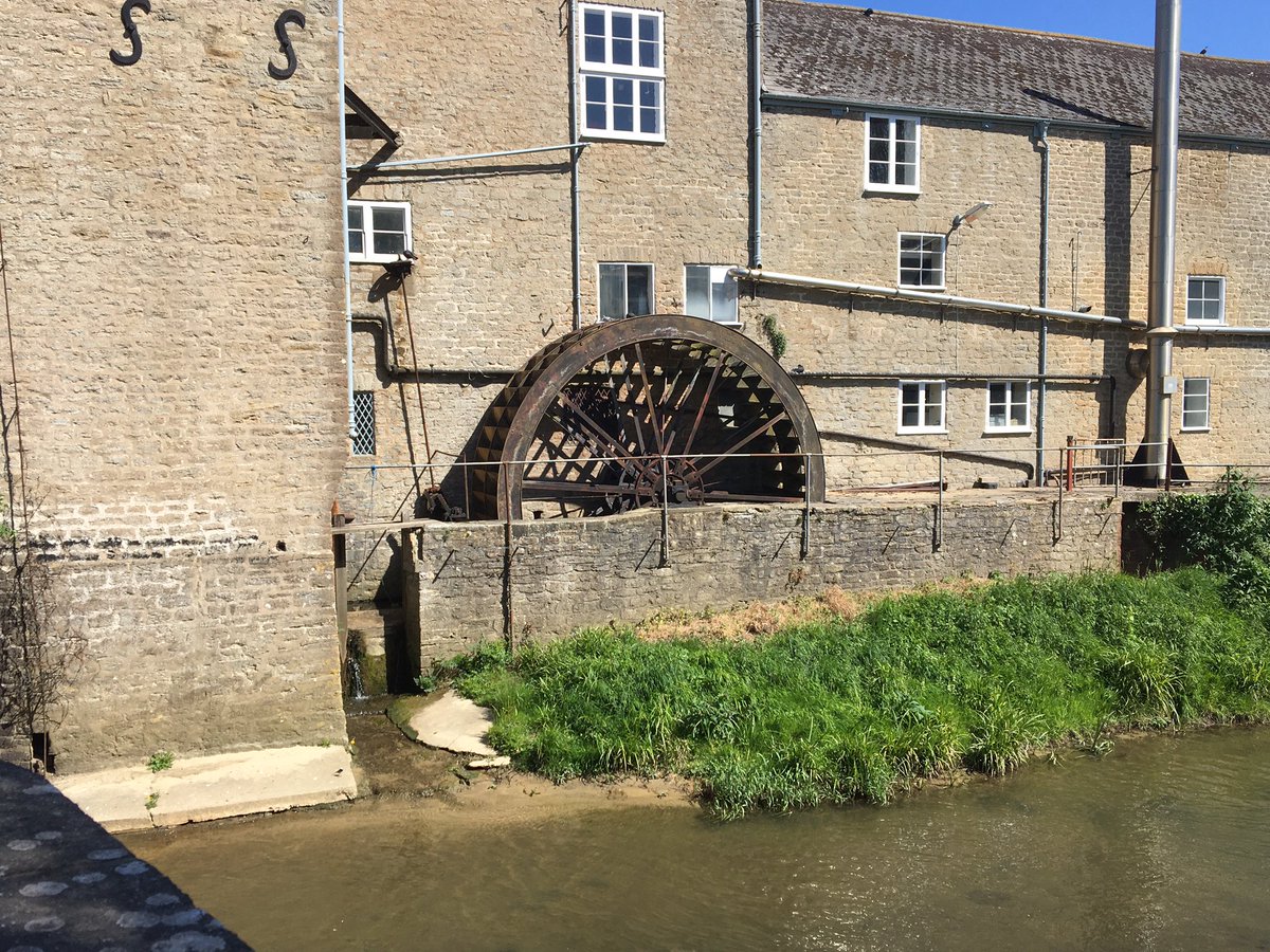 The brewery still has a waterwheel out the back. This is also where the two main rivers (Asker and Brit) in the town meet and then carry on south to the sea about a mile away.pic.twitter.com/XpjXmVLAXl