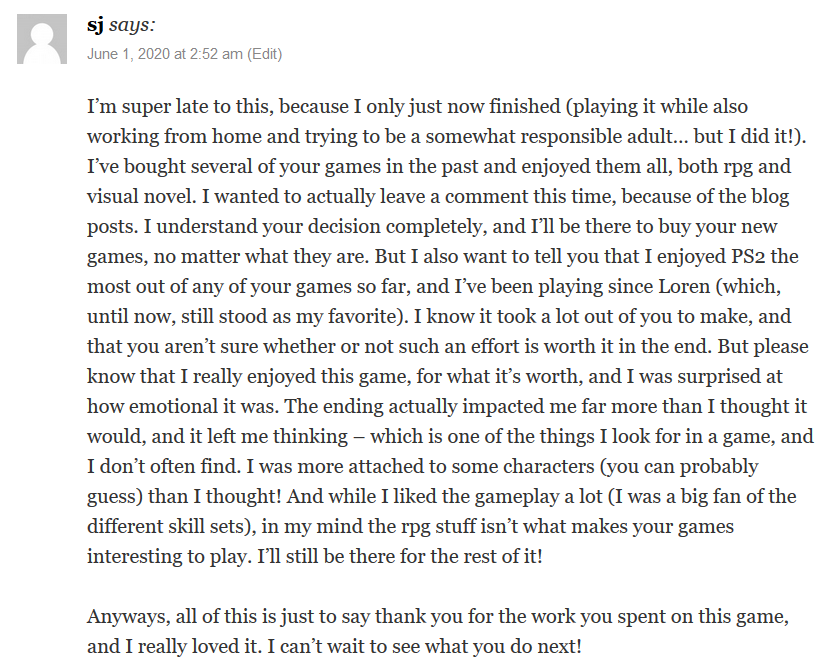 today got a nice comment on my blog about PS2! Nice to see it's considered my best game, even more than Loren. If I could just restart development from the beginning and not pick sci-fi this time... :Ppic.twitter.com/3lbqKYNLSn