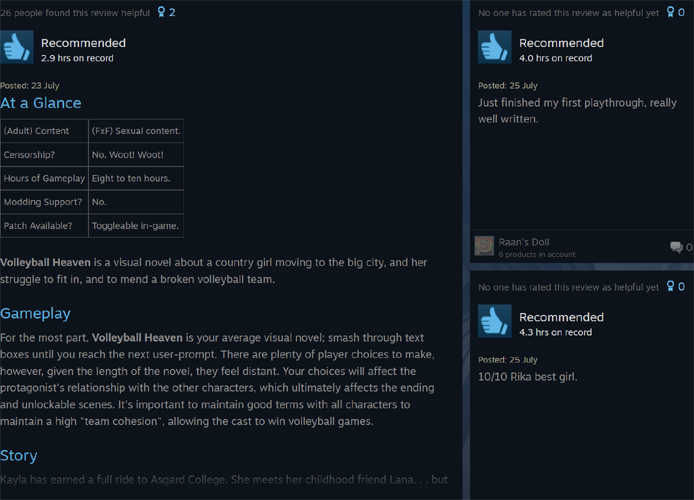 my VN/dating sim Volleyball Heaven is now officially out! https://winter-wolves.itch.io/volleyball-heaven … it's my first yuri (lesbian) only, and it's rather different from anything I've done in the past (more adult/mature) so if you play it let me know what you think
