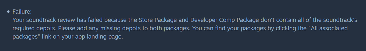 it's amazing just how even adding a simple soundtrack DLC is complex on Steam. I have no clue what they're asking about here, since I just added a zip as usual with the MP3