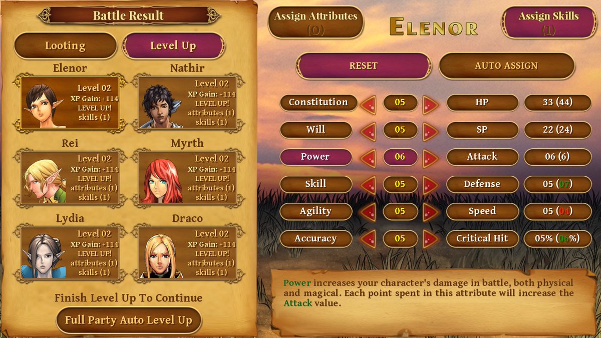 time to finish this "end of battle" screen, almost done but need to tweak it. I'm wondering though if to assing a kill XP bonus, since in all the 4 games there won't be "characters on the bench" 🤔so I think is weird to see all the party members levelling at same time?pic.twitter.com/sT7Apx9Yv7