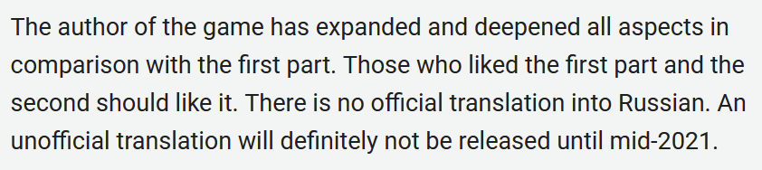 got another Planet Stronghold 2 positive review but was in russian, so I translated it with Google. Well, if they manage to translate that MONSTER of game (350k words, two genders, super branching plot) I'd be very impressed!
