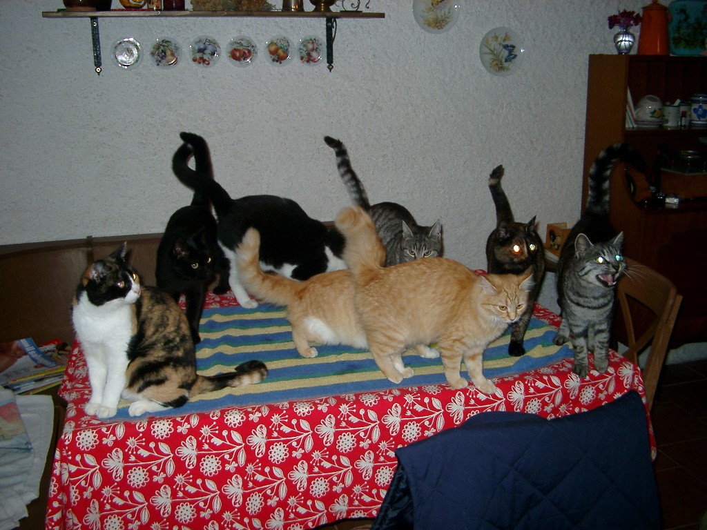 lol browsing old cat pictures. Here was in our old house, with almost all cats we rescued (12 in total so some are missing on the pic) on the table screaming for food :Dpic.twitter.com/FgVkpLREVp