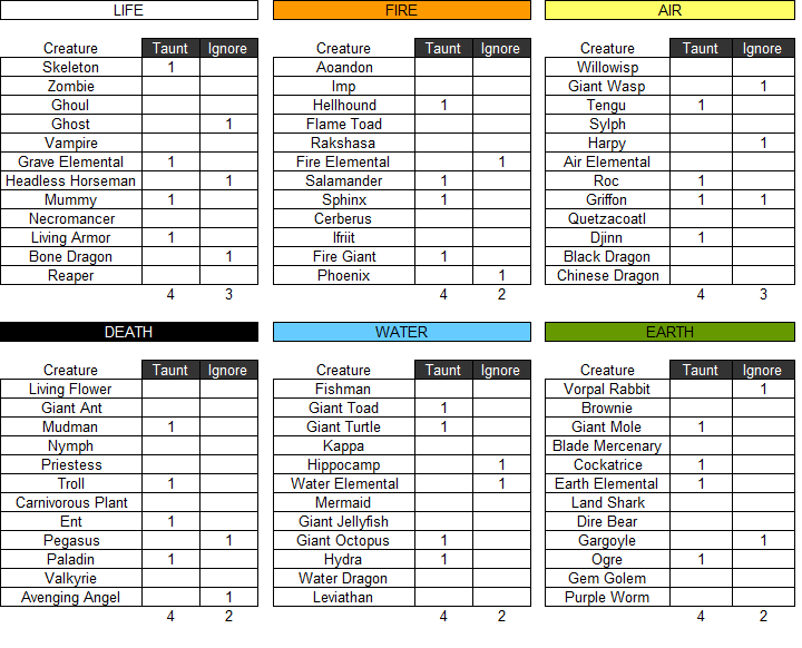 after 100 test battles (and more) it's clear that the taunt/ignore taunt mechanics are very important in Curse Of Mantras so it's time to open the spreadsheet and look at all the creature cards... it's fine if not all elements are the same thoughpic.twitter.com/BQiwBRtJ5T