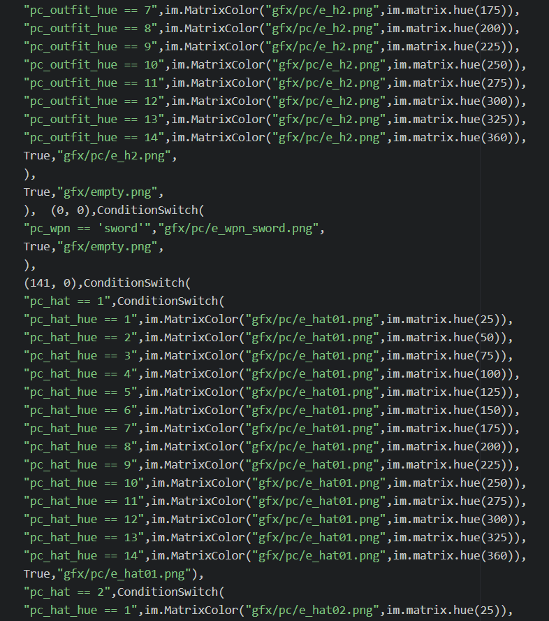 this morning woke up "hmm maybe I should convert Elenor/Saren character system into the more modern layered image" and then looked at the code and... NOPE 😂 tip: don't do customizable main characters (with tons of outfits, hats, accessories) it's a pain lolpic.twitter.com/IwW4LK5FDJ
