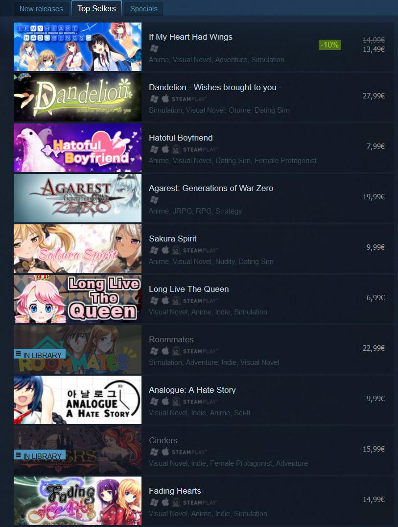currently 5 out of the 10 topselling VN on Steam were made with Ren'Py. @renpytom should be proud :)pic.twitter.com/1IZdaWLrLv