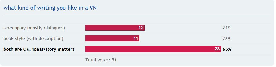 not many votes but this poll's result is interesting. Could try some different writing styles in future games...pic.twitter.com/2kNj7xdtDu