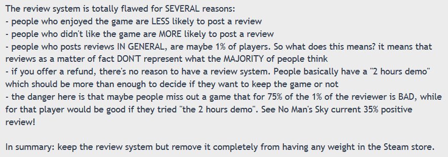 my 2cents on Steam review system and what I would do to change it :)pic.twitter.com/kZL3aLFefo