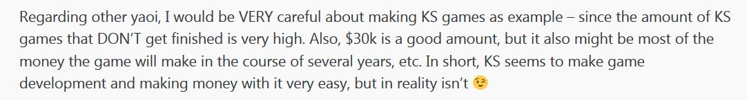 I'd be very careful in general to use KS games as example (in general, not just visual novels/dating sims), because... my 2cents:pic.twitter.com/5ZFitrSuYm