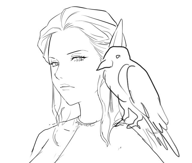 a sketch for "dark elf crow huntress". Yes you can romance her, but this game won't be out anytime soon, sorry XD #evil #teasingpic.twitter.com/ti45dEFwAZ