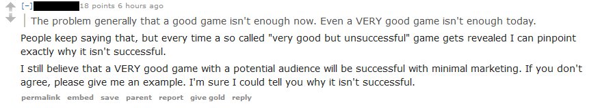 I want to expose conventional wisdom like, "Good games will sell with no marketing" to the light of reality. However, "good" is subjective