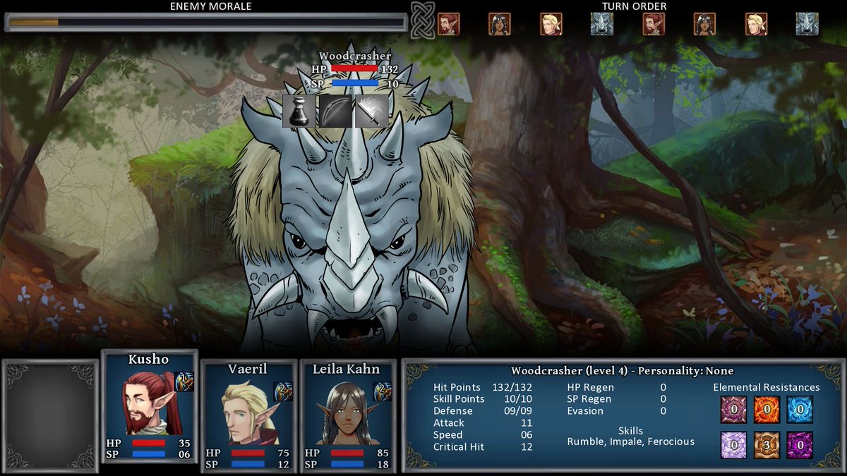 coding a boss fight against a huge animal called "Woodcrasher". Note the "Impale" skill