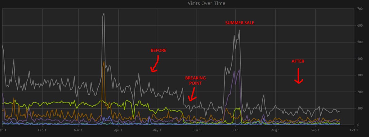 this is for an older game, Planet Stronghold. after the "breaking point", and the Summer Sale spike, visits are about -60% vs before