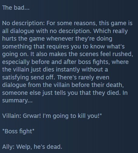 review. I always insist with my some of writers to not just write dialogue. That works in a movie, not a VN