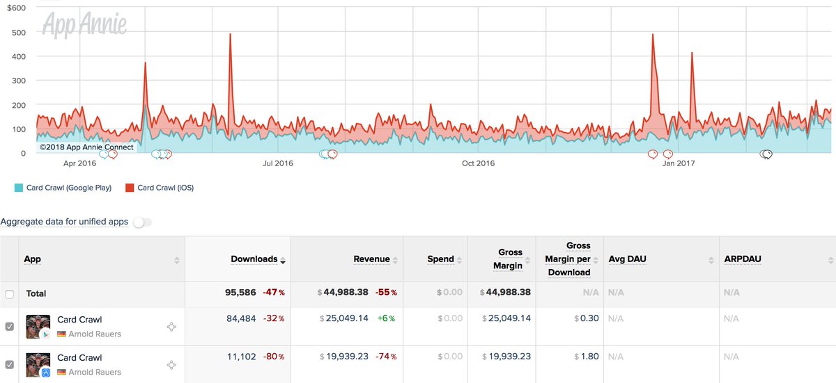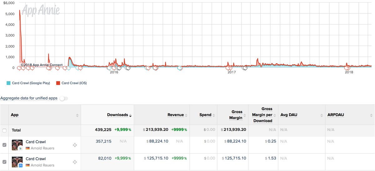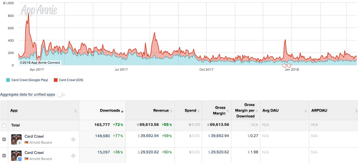 On March 12th my mobile solitaire style dungeon crawler @cardcrawl turned 3 years old. Here's a breakdown of it's revenue for each year and the big total of about $214000. Thanks for everyone who has played and bought it over the years! #gamedev #mobile #revenuepic.twitter.com/JKIUGnQajb