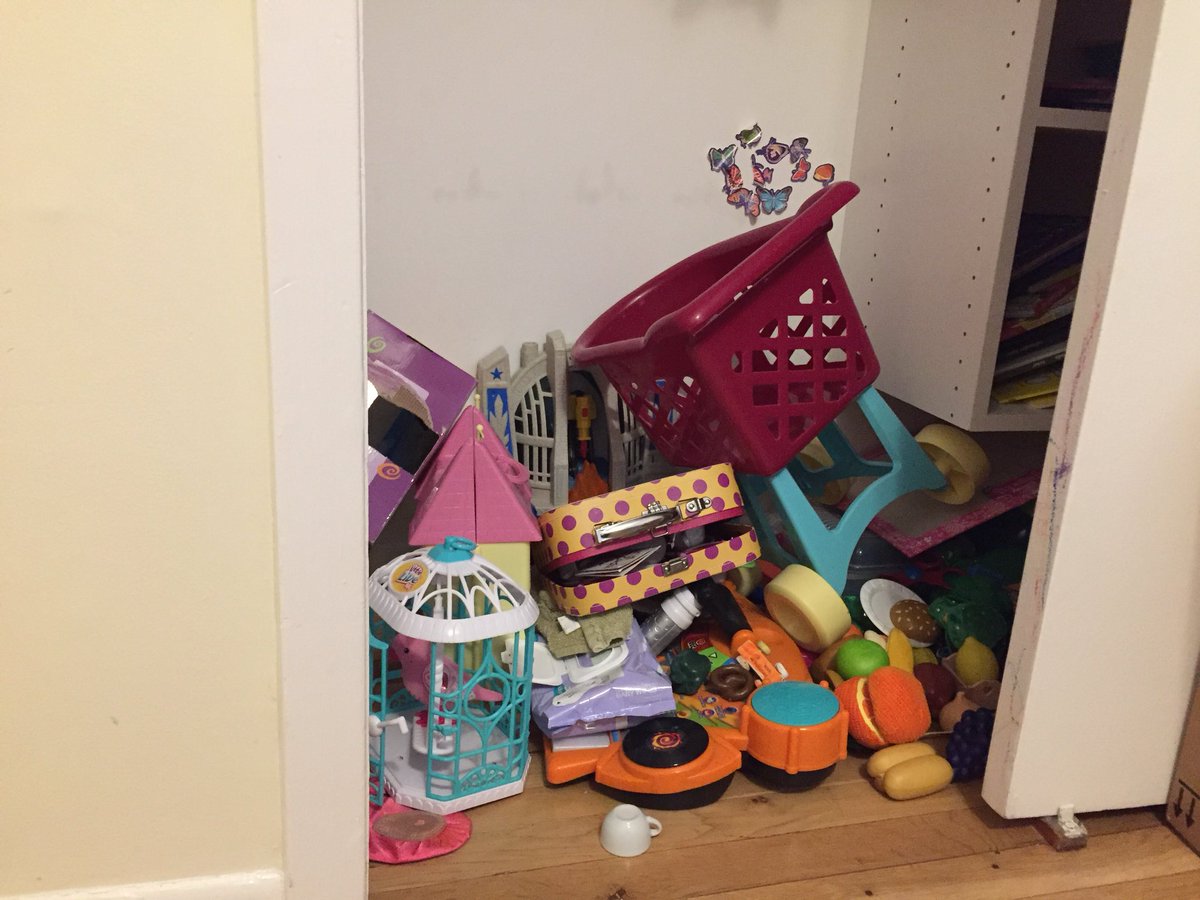 I told my daughter to clean her room. 15 minutes later I checked on her and the room was absolutely spotless. I was flabbergasted. I praised her like crazy. I rewarded her with an extra cartoon show that evening. Then a few hours later I check her closet...pic.twitter.com/7hkdomTHBp