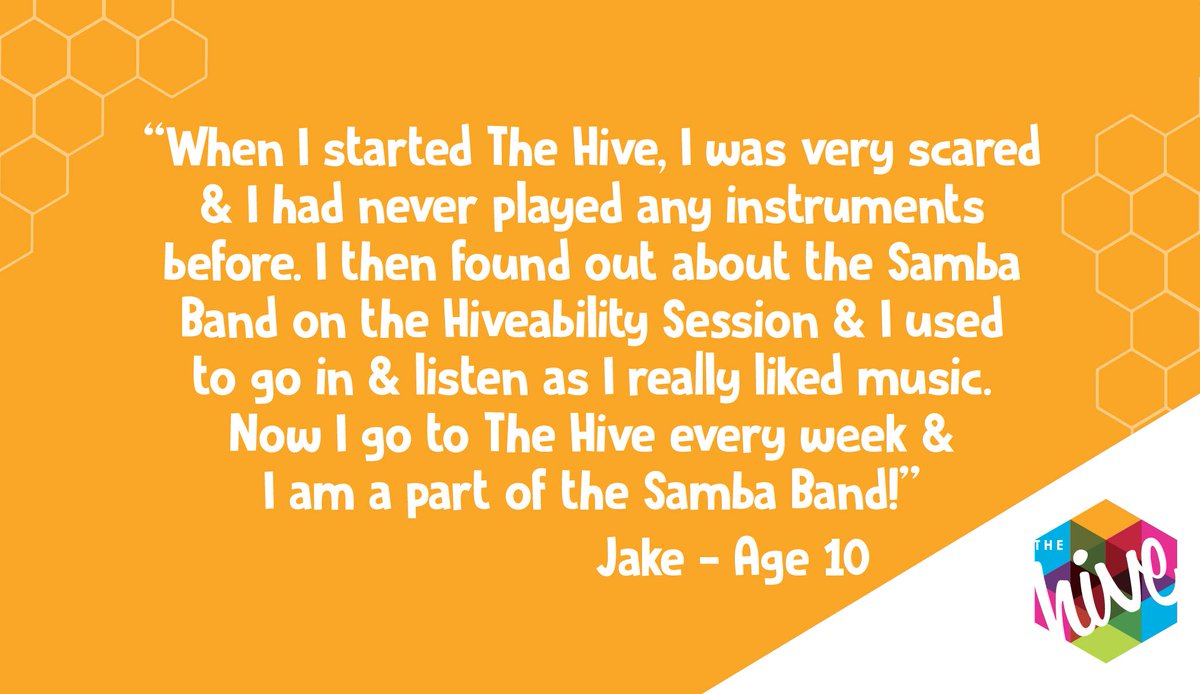 What is your favourite thing about our music facilities? Samba Band? Karaoke? 1 to 1’s? Learning a new instrument? Rap? There is so much possibility for our Hive members to BEE artistic and express themselves!