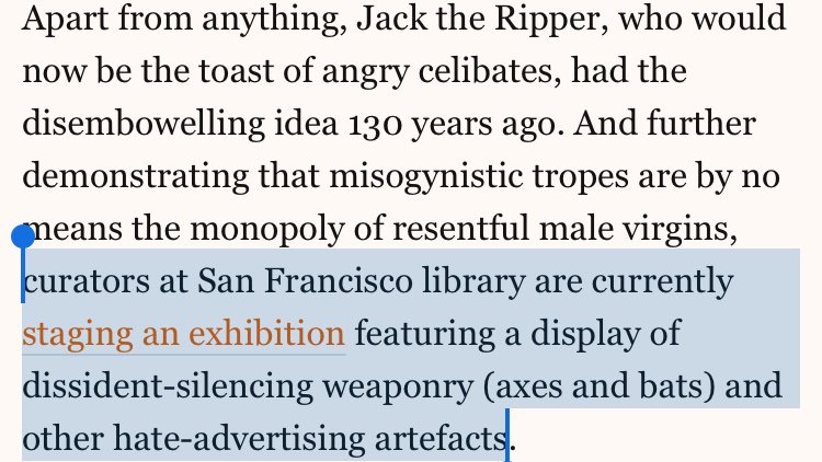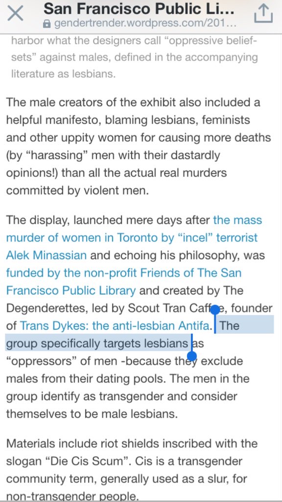 https://gendertrender.wordpress.com/2018/04/27/san-francisco-public-library-hosts-transgender-art-exhibit-featuring-weapons-intended-to-kill-feminists/?platform=hootsuite … @SFPublicLibrary @FriendsSFPL @MarkFarrellSF @michaelambert