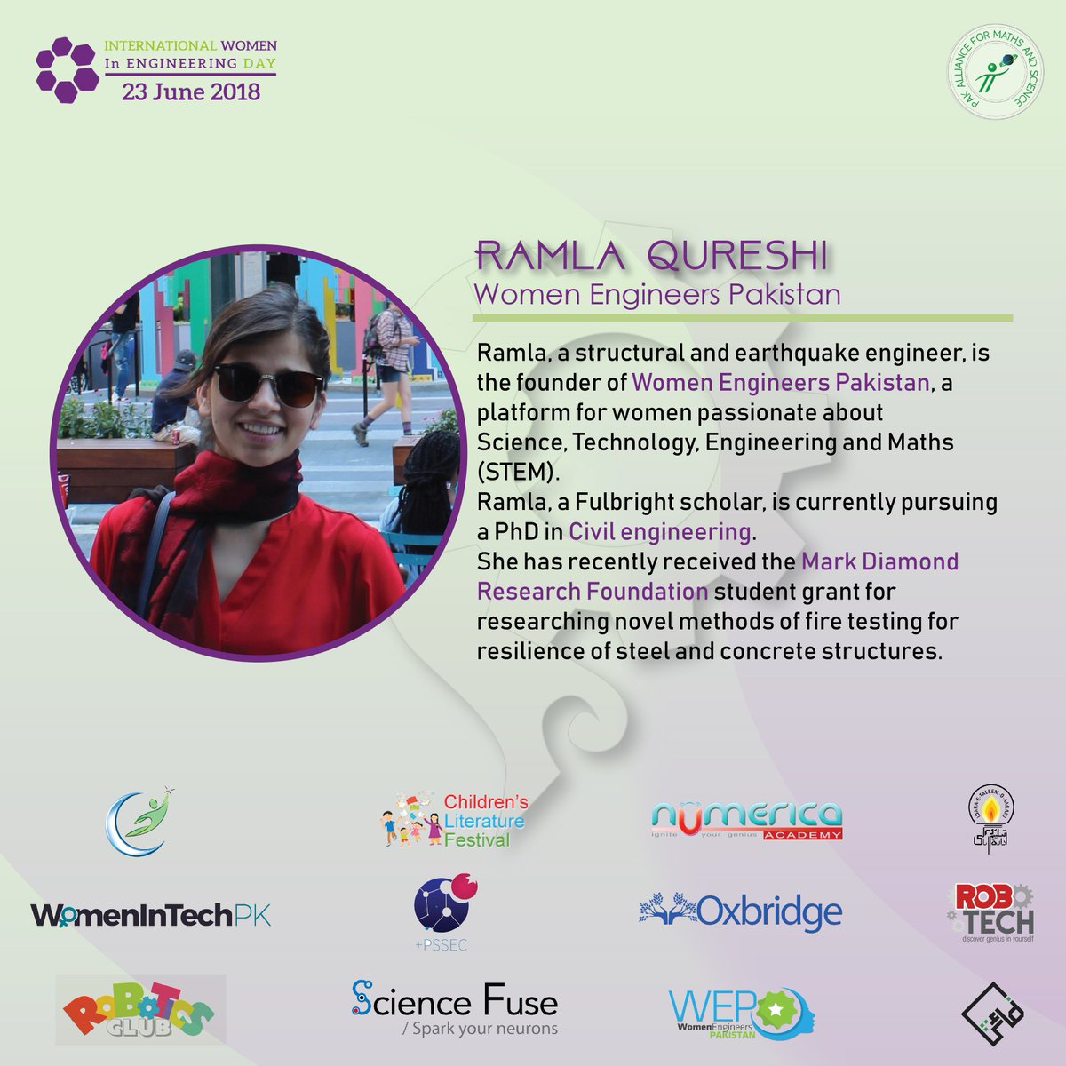 @Women_Engrs_Pk ,a platform for women passionate about (STEM). On this International Day of Women in Engineering, we celebrate inspiring#RoleModels like Ramla, who motivate future women engineers to strive for#STEM in Pakistan.#INWED18pic.twitter.com/c0uXyEgfBY