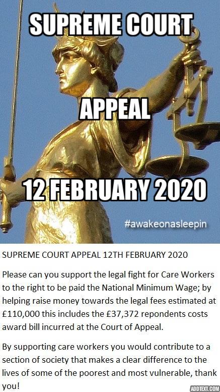 @BethRigby Would it be possible for you to share or RT this tweet/link with your followers? I'm trying to raise the necessary funds but only days left to do so. Thank you!#awakeonasleepin#ExemptfromNMW * https://crowdjustice.com/case/supreme-court-challenge-to-pay/ … *pic.twitter.com/2a7jCirum0