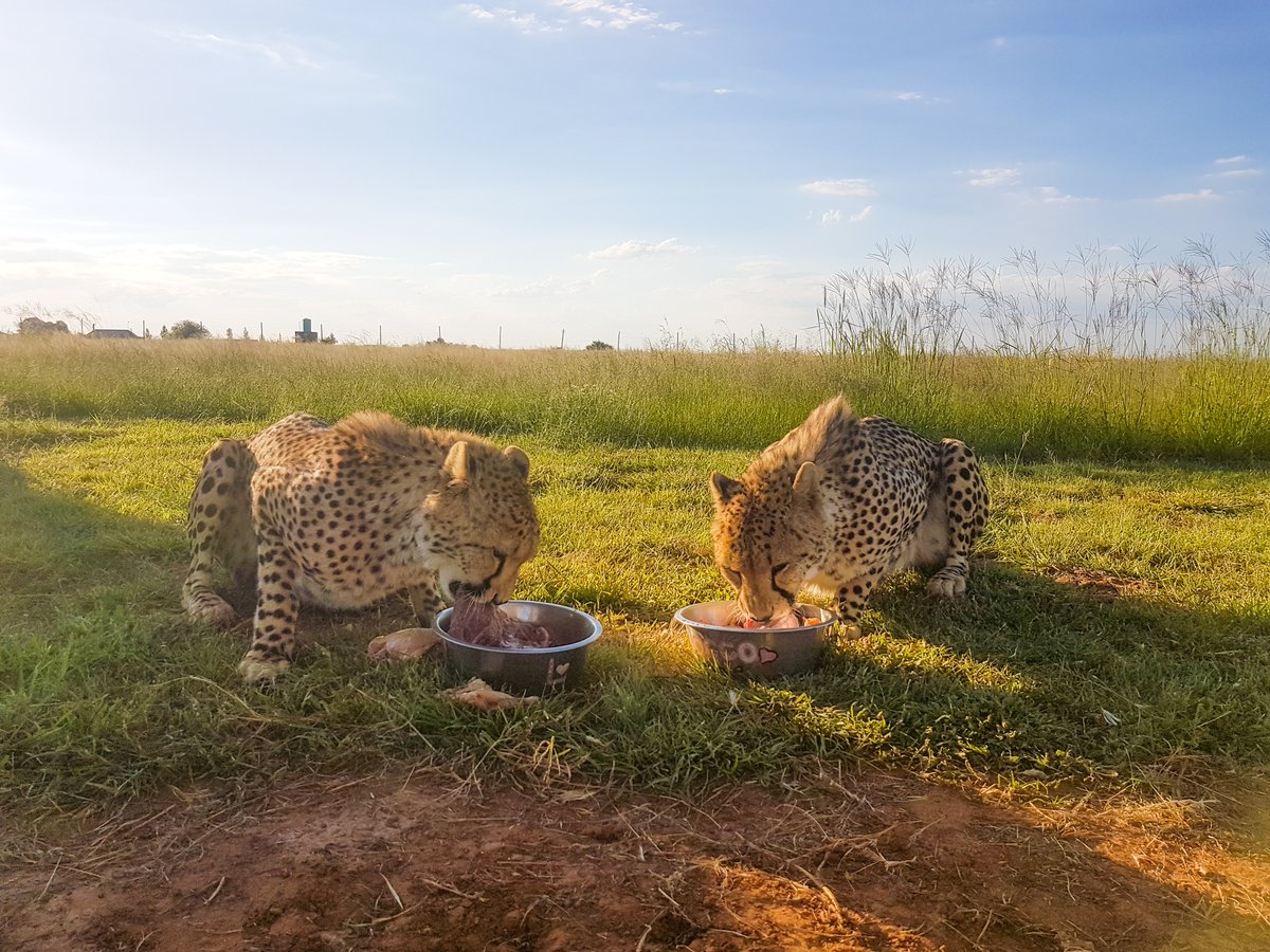 In our cheetah rehabilitation programme, part of the volunteers' responsibilties includes assisting with food preparation and feeding.
