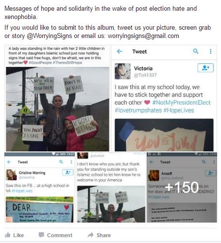 #HopefulSigns Messages of hope and solidarity in the USA https://www.facebook.com/media/set/?set=a.10102411786113705&type=1&l=e8f504eed9 …#hope#lovetrumpshate#safewithme#HopeLives#safety#usapic.twitter.com/PjuGj4HqWC
