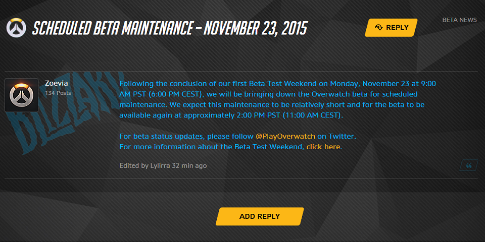 @valaniel Según la cuenta oficial es a las 11:00 AMhttps://twitter.com/PlayOverwatch/status/668829630342688768 …