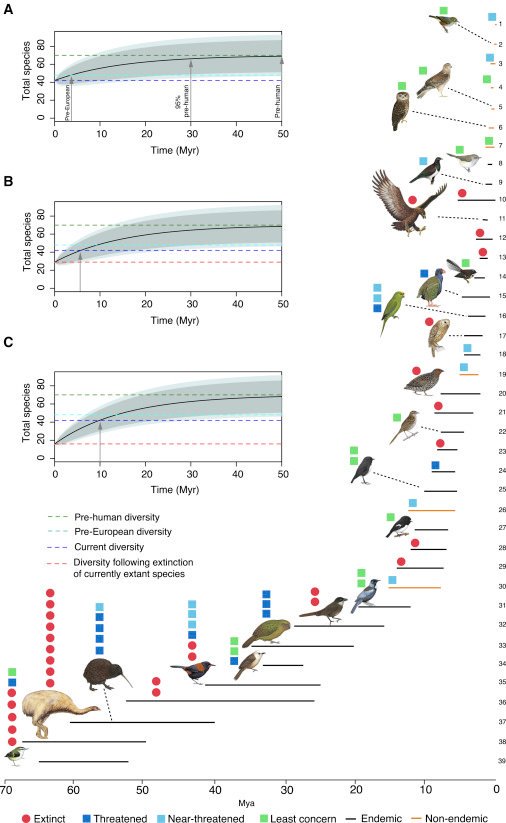 How long to "replace" extinct species? 50 million years for NZ landbird https://www.cell.com/current-biology/fulltext/S0960-9822(19)30785-7?utm_source=share&utm_medium=ios_app#secsectitle0025 … 10 million years for Greater Antilles Caribbean bats https://par.nsf.gov/servlets/purl/10025974 …