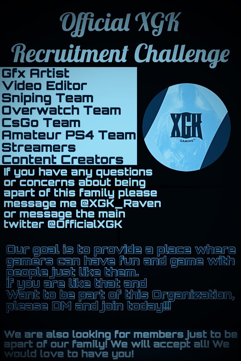 @OfficialXGK Recruitment Challenge. DM to join!All are accepted!#LLXGK (Long live XGK)@Mr_XGK@JoinXGK@XGKladies@Bobby_Timan@Dark_Age28pic.twitter.com/Q1TNMhoodj