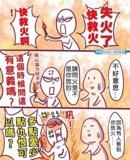 China saving the world- A: Fire, kill the fire, quick! B: Excuse me, are you the one who set the fire? A: What’s the meaning of asking this question now? Just work on it together,ok? B: Because someone saw you set the fire..... A: More love & less hate ok?